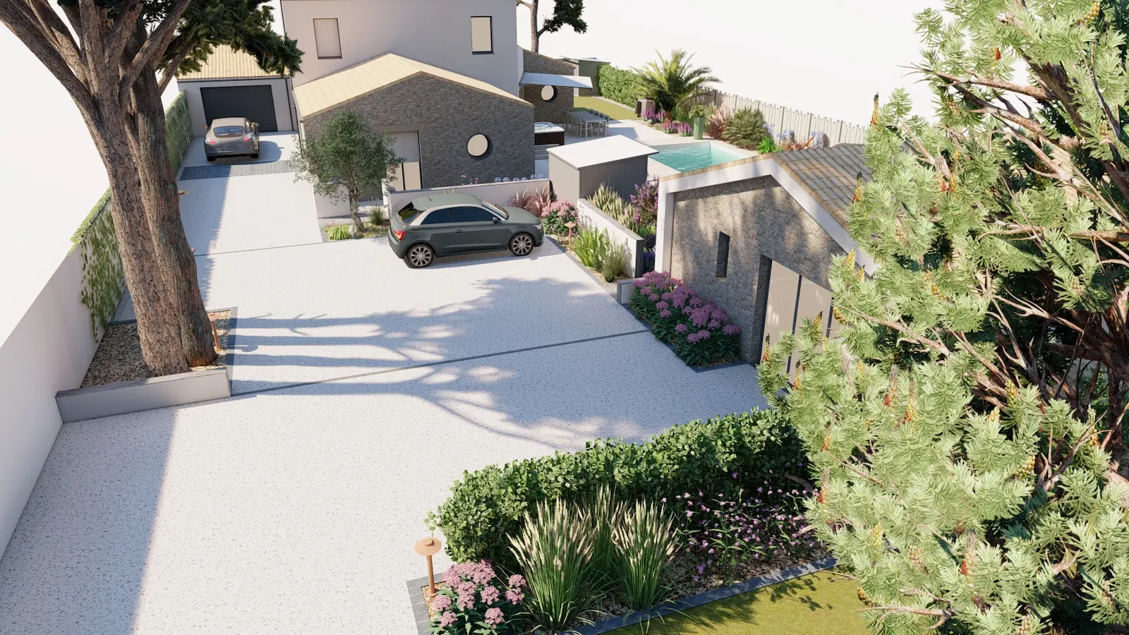 Là, un patio avec terrasse fonctionnelle, solarium, potager aromatique et zone de stationnement de vélos ; ici, de l’éclairage pour mettre en valeur les massifs, accentuer le graphisme d’un escalier, d’une terrasse ou d’une façade et réveiller les plantes endormies ; plus loin, la lame d’eau apporte une atmosphère rafraîchissante.